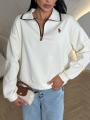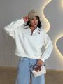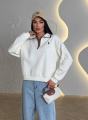 Стильный свитшот-поло на молнии идеальный баланс между спортивной расслабленностью и аккуратной классикой Плотный, мягкий трикотаж держит форму, воротник с контрастной окантовкой добавляет характер, а свободная посадка дарит комфорт на каждый день Легко сочетается с джинсами, брюками и спортивными образами, создавая аккуратный и дорогой вид без усилий.