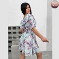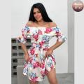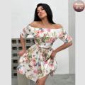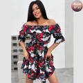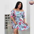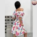 Распродажа летних приталенных платьев в крупных цветах с открытой зоной декольте, где симфония силуэта и цвета добавляет образу нотку смелой элегантности, придавая образу легкость и романтичность без лишних расходов.