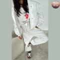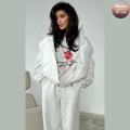 Центральным элементом этого ансамбля является завораживающий принт роза Этот символ вечной красоты и нежности расцветает на мягкой тканьи толстовки, превращая привычный спортивный костюм в произведение искусства Крупные, но деликатные лепестки розы, словно написанные рукой мастера, придают образу глубину и изысканность, намекая на скрытую страсть и внутреннюю силу.