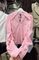 Приталенная рубашка с акцентным воротником и объмными рукавами эффектно и женственно.