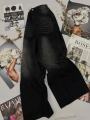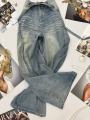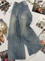 Широкие джинсовые брюки с камнями
