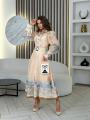 Длина изделия по спинке 127 см, длина рукава от шва 66 см Пояс в комплекте, платья на подкладке.