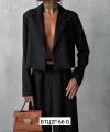 Костюм с укороченным пиджаком и брюками палаццо.