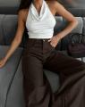 New женский джинсы труба со стразами