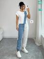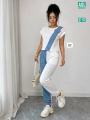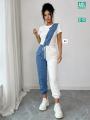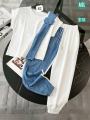 Трендовый костюм с оригинальным дизайном: сочетание лгкой тканьи и джинса создат эффектный и современный look.