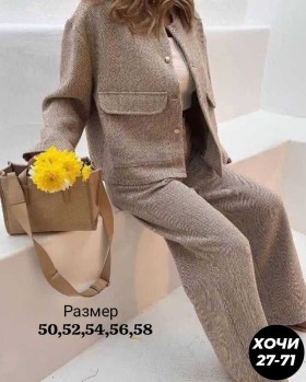 Хит Просто любовь с первого взгляда Это нереальная находка для женского гардероба-костюм с брюками из качественной тканьи Идеальная посадка, стильный дизайн и невероятно комфортный Цена: 1300 рублей (₽) размеры: 44 48 50 52 54 56 58ткань: кашемир отличное качество успейте приобрести!.