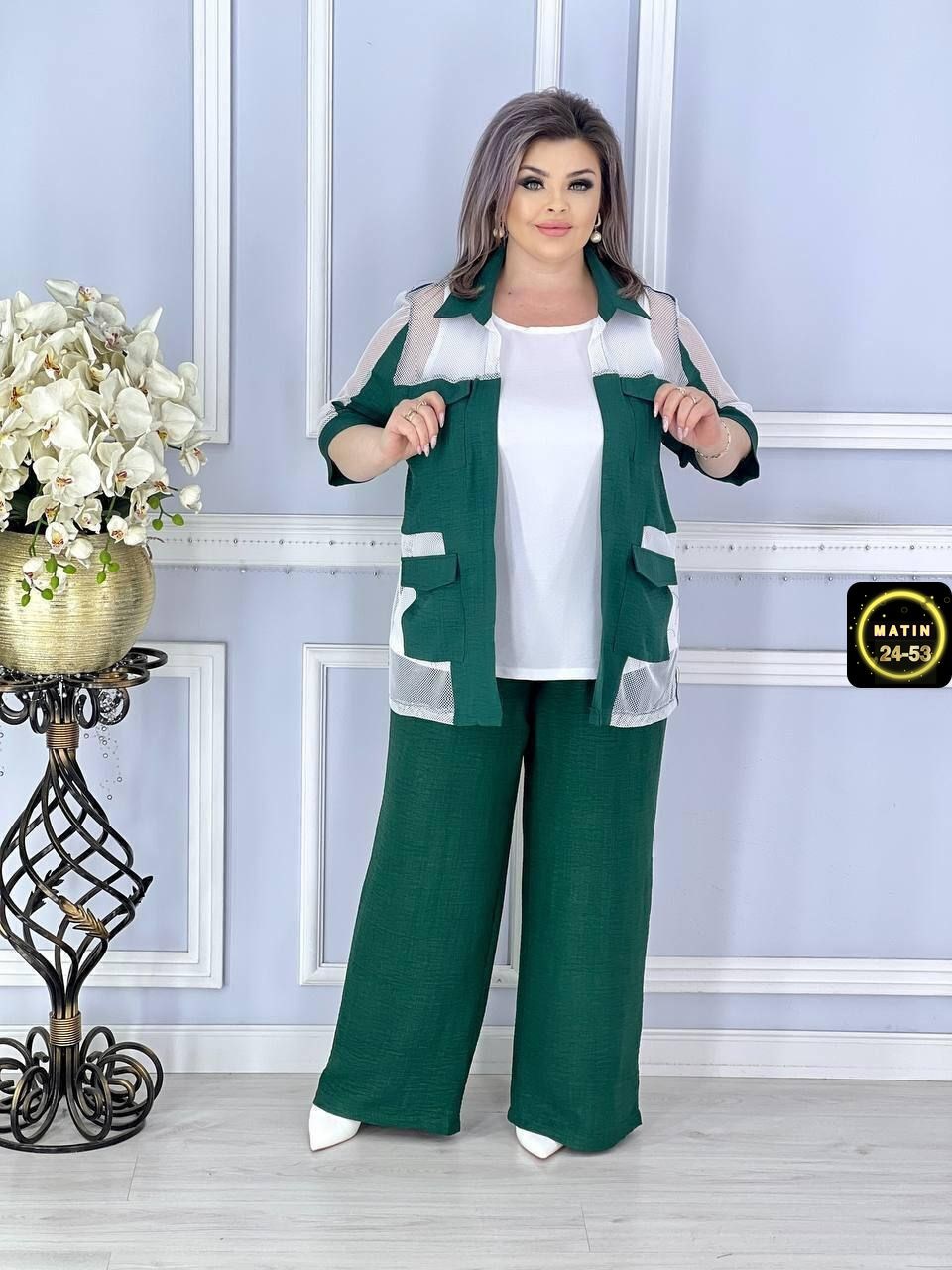 Распродажа тройка цвет без выбора ткань санта барби ткань кофта бенгалин размер (56-58) (60-62)цена 600руспейте приобрести.