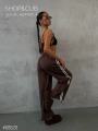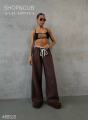 Модель демонстрирует брюки, маркировка s(42).