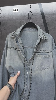 Стильная джинсовая рубашка с вышивкой на кнопках.