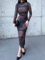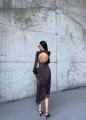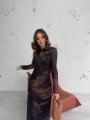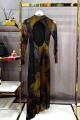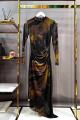 Длинное силуэтное платье с длинными рукавами и эффектной открытой спиной образ, который притягивает взгляд с первого шага Необычный принт в тмной палитре с цветными акцентами делает модель выразительной и по-настоящему стильной.