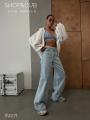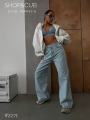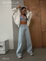 Модель демонстрирует джинсы, маркировка 26(42).