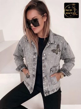 Женская стильная курточка джинсовый с жемчугом это стильная и модная одежда, идеальный выбор для девушек, ценящих комфорт.