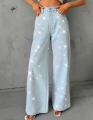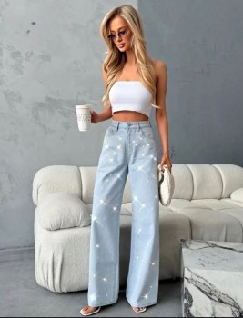 New женский джинсы труба со стразами