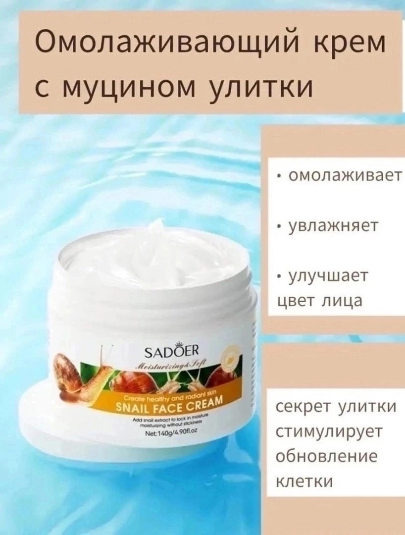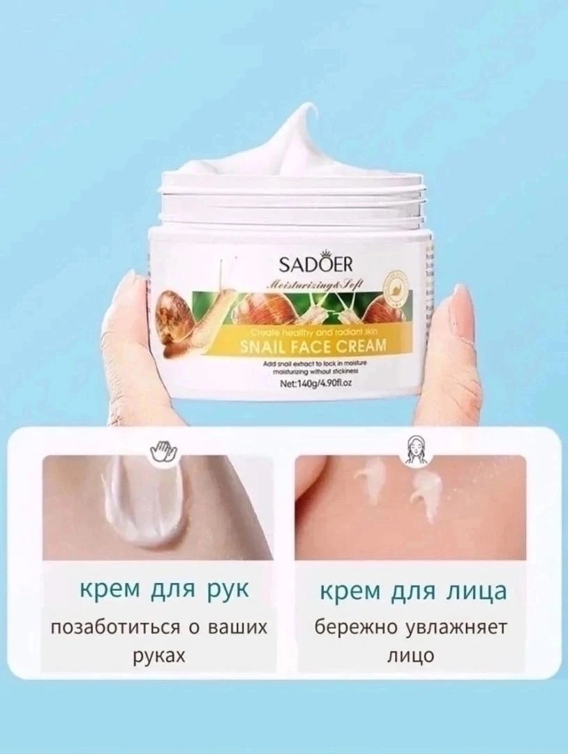 Наш крем для лица с муцином улитки sadoer - это идеальное рещение для вашей поврежденной кожи Он содержит муцин улитки, который известен своими питательными и омолаживающими свойствами Крем также содержит гиалуроновую кислоту и коллаген, которые способствуют увлажнению и лифтингу кожи Он идеально подходит для смешанной, жирной, сухой и чувствительной кожи Этот антивозрастной крем для молодой кожи поможет бороться с морщинами и синяками, а также предотвратит появление новых Используйте его как дневной или ночной крем или в качество маски для лица В нашем ассортименте также есть легкий вечерний и ночной кремы для комбинированной кожи Этот профессиональный крем является частью нашей уходовой косметики Крем для лица с муцином улитки восстановит поврежденную кожу, напитает клетки полезными микроэлементами Невероятно нежная легкая консистенция крема ухаживает за кожей, бережно осветляя ее Активные вещества борются с потерей влаги, сухостью и шелушением Улитки вырабатывают вещество, которое обладает мощными антиоксидантами, регенерирующими и антибактериальными действиями Слизь моллюсков великолепно борется с растяжками и шрамами Она содержит в своем составе: эластин, коллаген, аллантоин и гликолевую кислоту Гиалуроновая кислота активно борется с возрастными изменениями, придает лифтинг-эффект вашей коже Ваша кожа будет сиять и радовать вас Масло жожоба глубоко проникает в кожные поры, обеспечивает защитный слой, идеально увлажняет и питает кожу.
