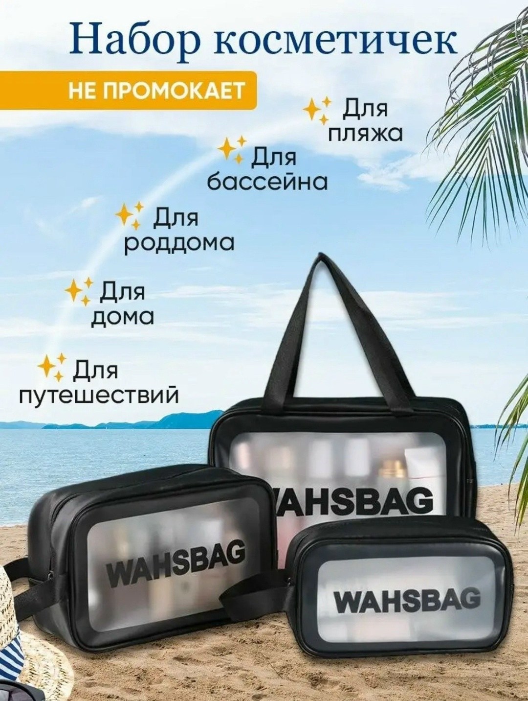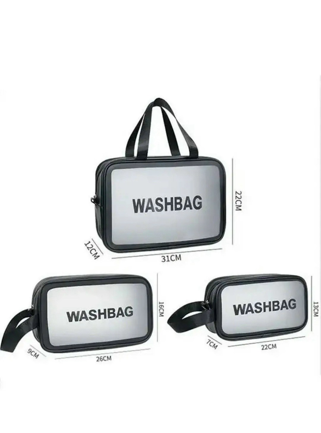 Недорогой комплект вместительных непромокаемых органайзеров - универсальный подарок для женщин и мужчин Набор из трех косметичек включает прозрачную сумочку с внутренним отделением и 2 небольшие косметички, которые идеально подойдут для хранения косметики, так же может послужить как косметичка органайзер для маникюра Все косметички выполнены из высококачественного непромокаемого материала и имеют удобный дизайн, поэтому подойдут для бани, сауны, бассейна и пляжа Сумку косметичку будет удобно взять в роддом Дорожная косметичка подойдет как для чемодана и как ручная кладь, что позволит вам необдимое, иметь всегда рядом с собой Вы можете купить косметички и удобный органайзер с ручками для путеществий, походов в спортзал и для хранения домашней косметики в душе Мужчины могут использовать данный кейс как мужской несессер для зубной щетки, пасты, бритвы и пены для бритья Стильная прямоугольная форма, цвета (черный, розовый) и трендовый принт превращают кейсы в отличный подарочный вариант Идеально подойдет в качество подарка любимой женщины, маме, дочери, сестре, мужу, папе, сыну, парню, коллеге Желаем вам удачных покупок.