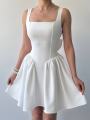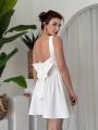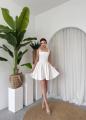 Нежное платье с акцентом на утончнную женственность: аккуратный квадратный вырез подчеркивает линию декольте, а приталенный силуэт плавно переходит в лгкую расклешнную юбку Открытая спинка с изящным бантом добавляет образу романтики и притягивает взгляды Идеальный вариант для особенных моментов, когда хочется выглядеть легко, изысканно и запоминающе.