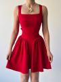 Нежное платье с акцентом на утончнную женственность: аккуратный квадратный вырез подчеркивает линию декольте, а приталенный силуэт плавно переходит в лгкую расклешнную юбку Открытая спинка с изящным бантом добавляет образу романтики и притягивает взгляды Идеальный вариант для особенных моментов, когда хочется выглядеть легко, изысканно и запоминающе.