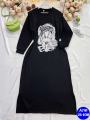 Тплые платья на флисе с принтом цвет чрный.