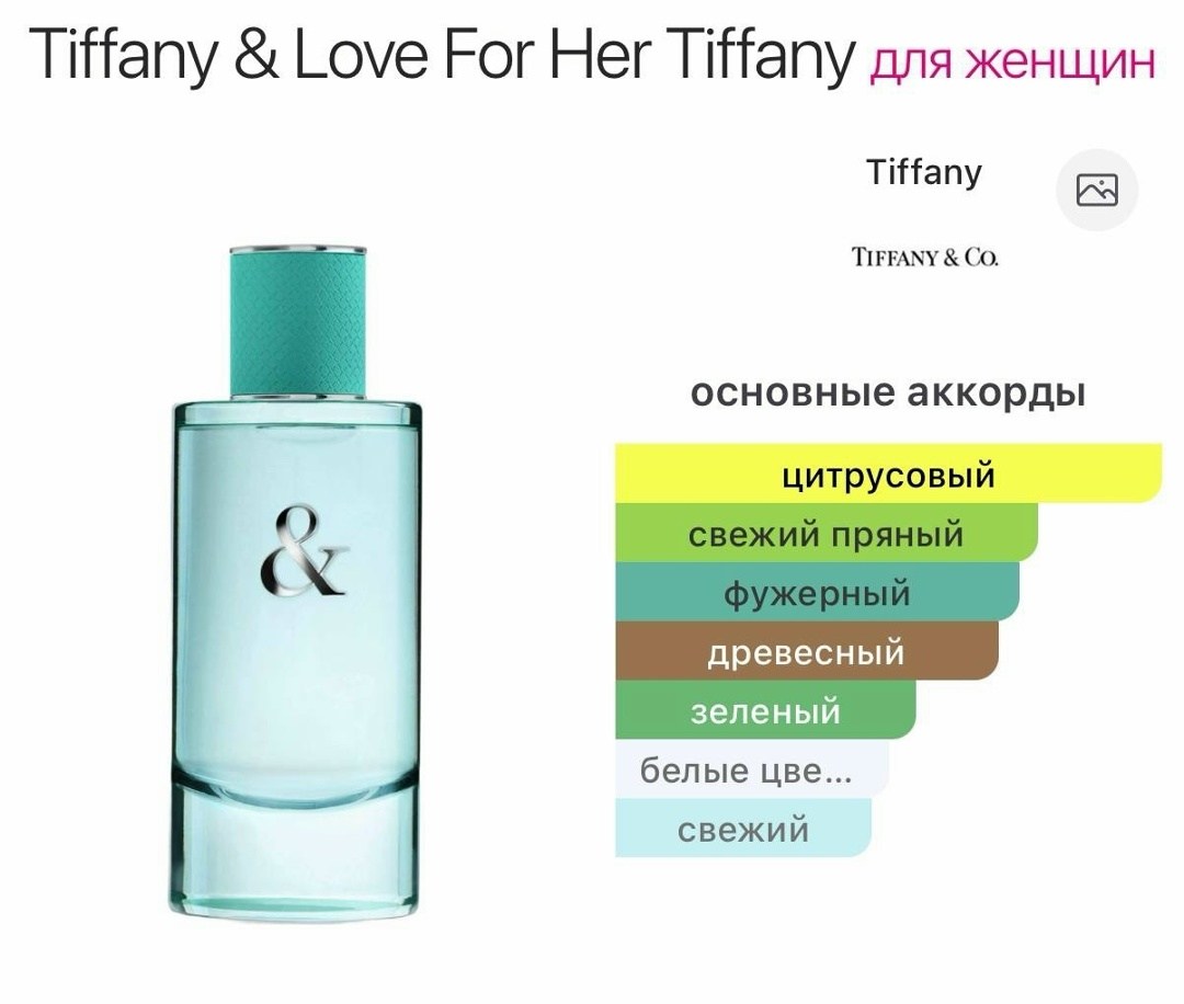 Tiffany love for her цветочный женский аромат 2019 года от honorine blanc и marie salamagne Верхние ноты: грейпфрут, базилик Средняя: нероли Базовые: кедр, ветивер, секвойя.