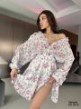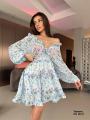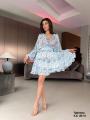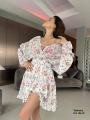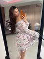 Модное платье с глубоким -v образным вырезом и открытой спиной,длинный рукава на резинке.