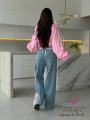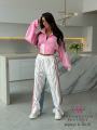 Трендовые широкие брюки с вставками из денима.