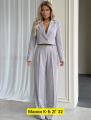 Пиджак имеет свободный крой, брюки палаццо добавят свободу и комфорт.