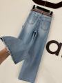 Джинсы прямые рваные с посадкой