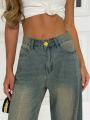 Стильные джинсы украшенные стразами, которые подчеркнут вашу индивидуальность.