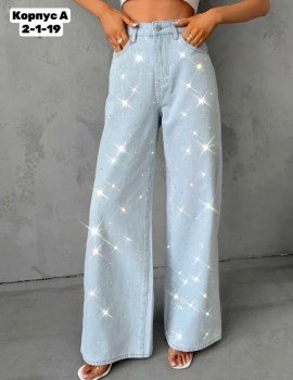 New женский джинсы труба со стразами