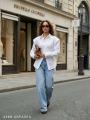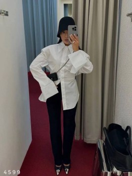 Хлопковая рубашка с акцентными объемными плечами и шнурком (можно завязать на спинке и сформировать узкую талию) Длина от плеча 75см / пог 47см Арт 4599.
