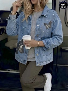 Женская стильная курточка джинсовый с жемчугом это стильная и модная одежда, идеальный выбор для девушек, ценящих комфорт.