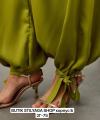 Женские брюки-алладины из атласа цвета лайм станут стильным и удобным дополнением шикарные ветровкиа Модель с высокой посадкой и завязками на талии обеспечит комфорт в течение всего дня, а струящийся атлас добавит образу элегантности.