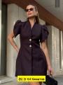 Стильный платье-пиджак с золотыми пуговицами.