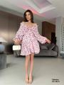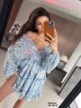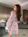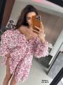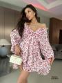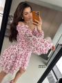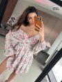 Модное платье с глубоким -v образным вырезом и открытой спиной,длинный рукава на резинке.