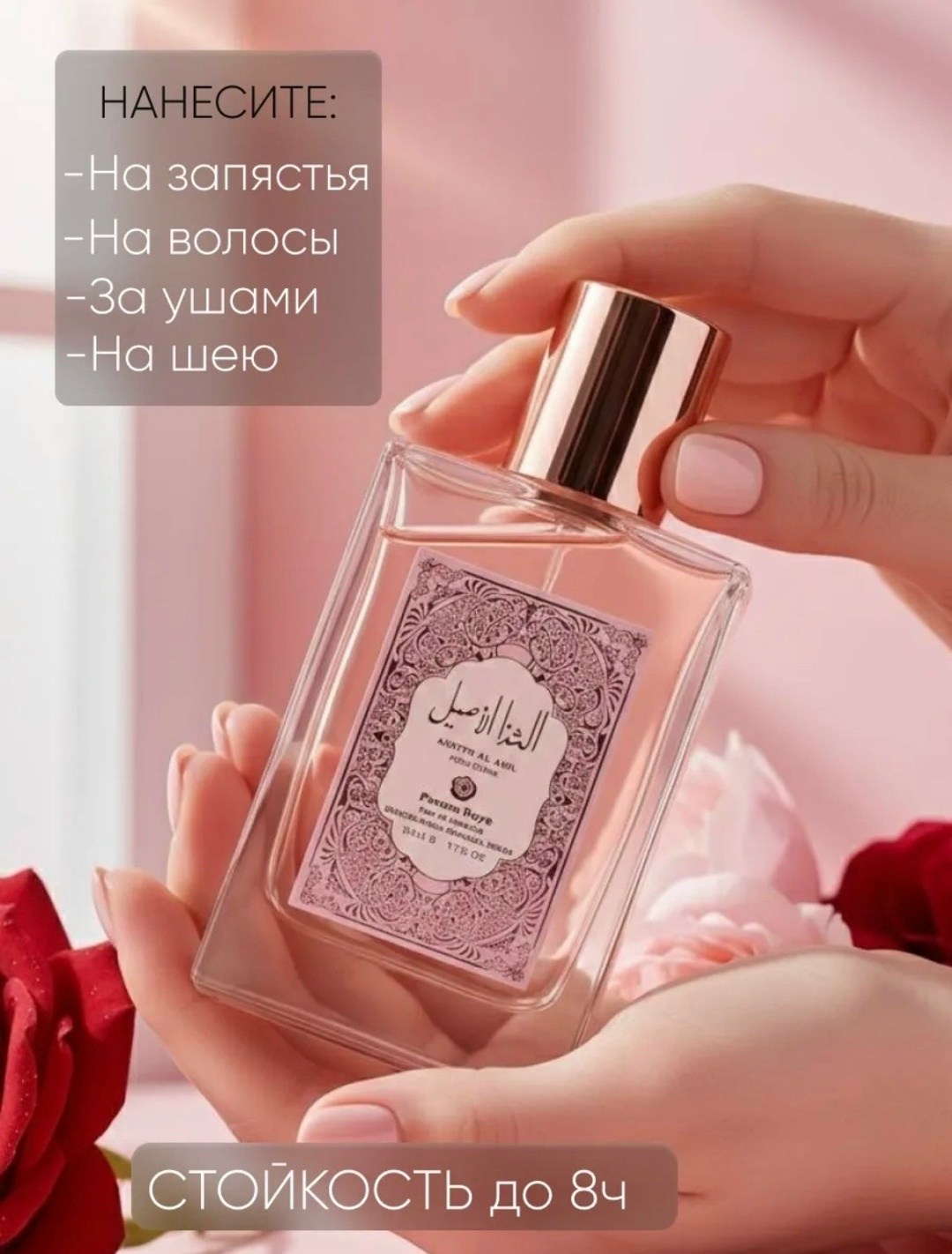 Парфюмерная вода представлена знаменитым брендом из оаэ в 2022 г , в составе арабской коллекции Нежный оттенок флакона, золотые элементы декора, арабская вязь подчеркивают царственную красоту королевы цветов.