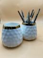 Эти стильные керамические подставки станут идеальным рещением для организации рабочего пространства мастера маникюра, визажиста или просто украшением вашего туалетного столика.