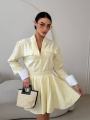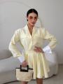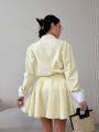 Стильный комплект с акцентом на женственный силуэт и аккуратные детали Рубашка свободного кроя с выразительными манжетами и декоративными клапанами придат образу элегантность, а мини-юбка с высокой посадкой подчркивает талию и красиво раскрывается при движении.