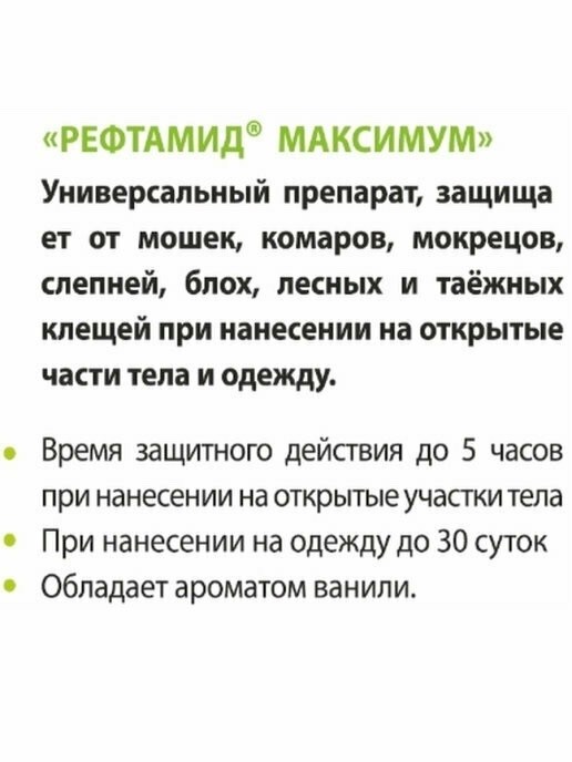 Средство от насекомых рефтамид максимум 3в1 пр мошек комаров клещей 147мл.