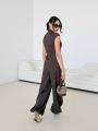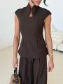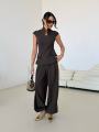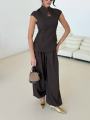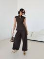 Бомбезный костюм двойка,симпатичный желет с акцентом на линию декольте, костюмная ткань, брючки алладинки длинная 109 см.