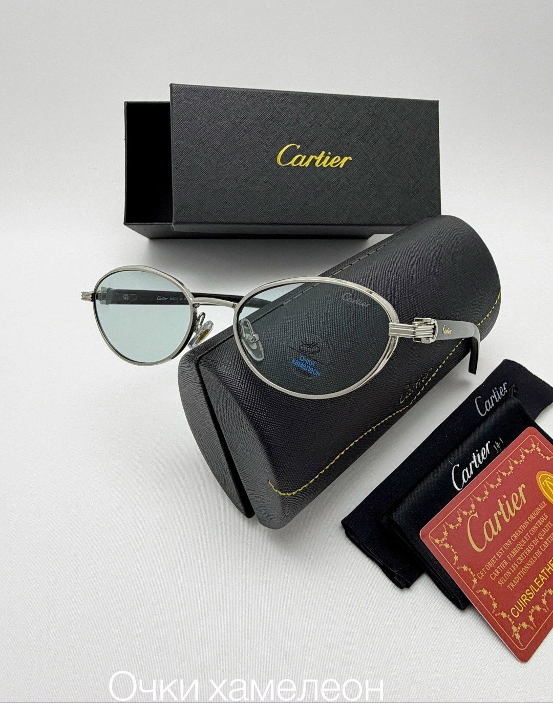 Комплекс: очки коробка фуляр салфетки мешок трикотажа = 850 руб.