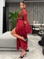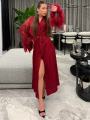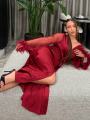 Эффектный халат с роскошной отделкой из перьев лгкий, струящийся и невероятно женственный Идеально подчркивает силуэт, добавляя образу утончнность и нотку гламура Подойдт как для особого вечера, так и для стильных домашних образов.