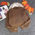 Вязаный пуловер с круглым вырезом и кисточками, женский свитер с длинными рукавами, короткая женская уличная одежда, осень-зима, новые повседневные свитера,.