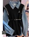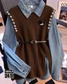 Стильный микс: джинсовая рубашка жилет лапша.