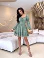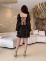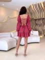 Для смелых, дерзких и ярких образов подойдут этого трендовое платья в цветочек спина завязывается на шнурках.