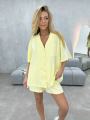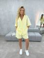 Спорт костюм летний состоит из шорт и лгкой блузы-рубашки из хлопка Рубашка свободного кроя с коротким рукавом подходит для повседневной носки.