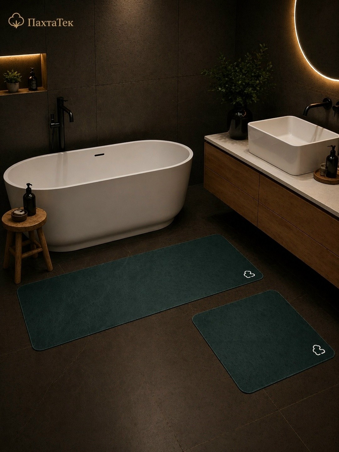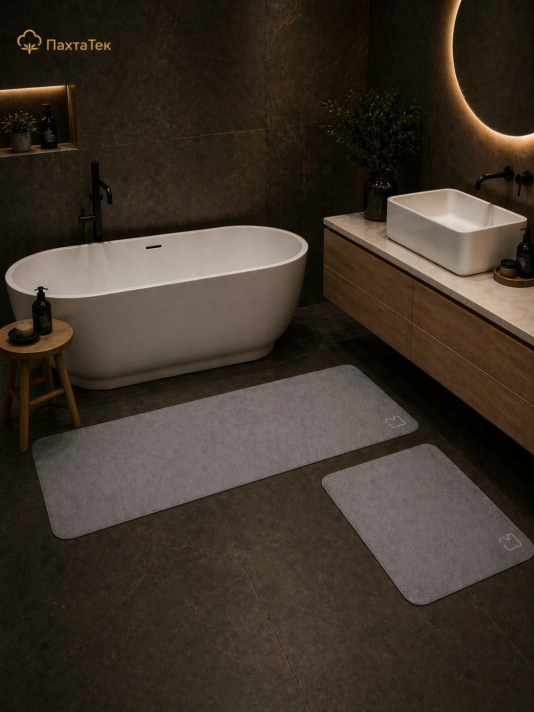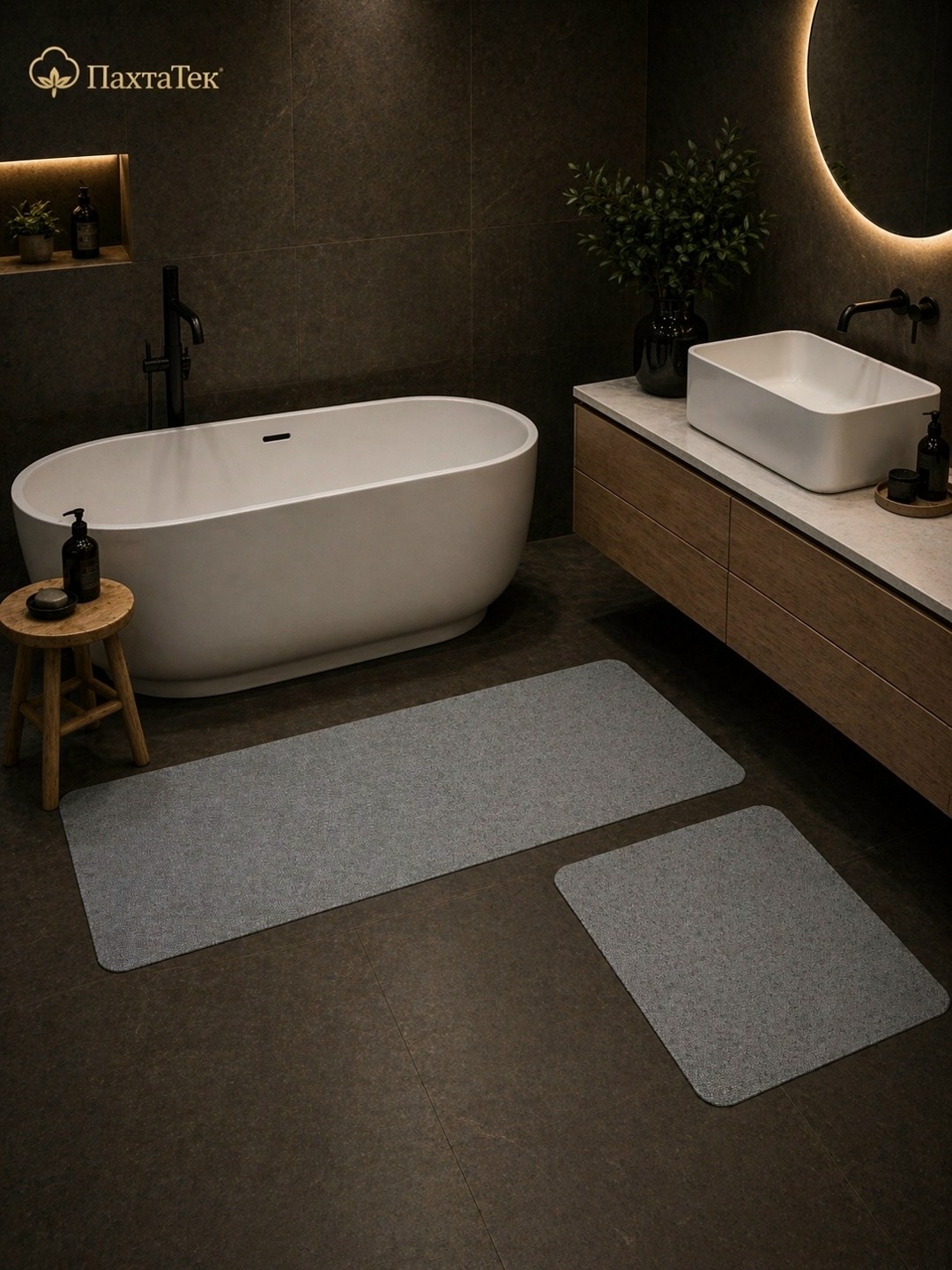 Набор отлично подходит для размещения возле ванны и раковины, создавая аккуратный и стильный вид в ванной комнате.