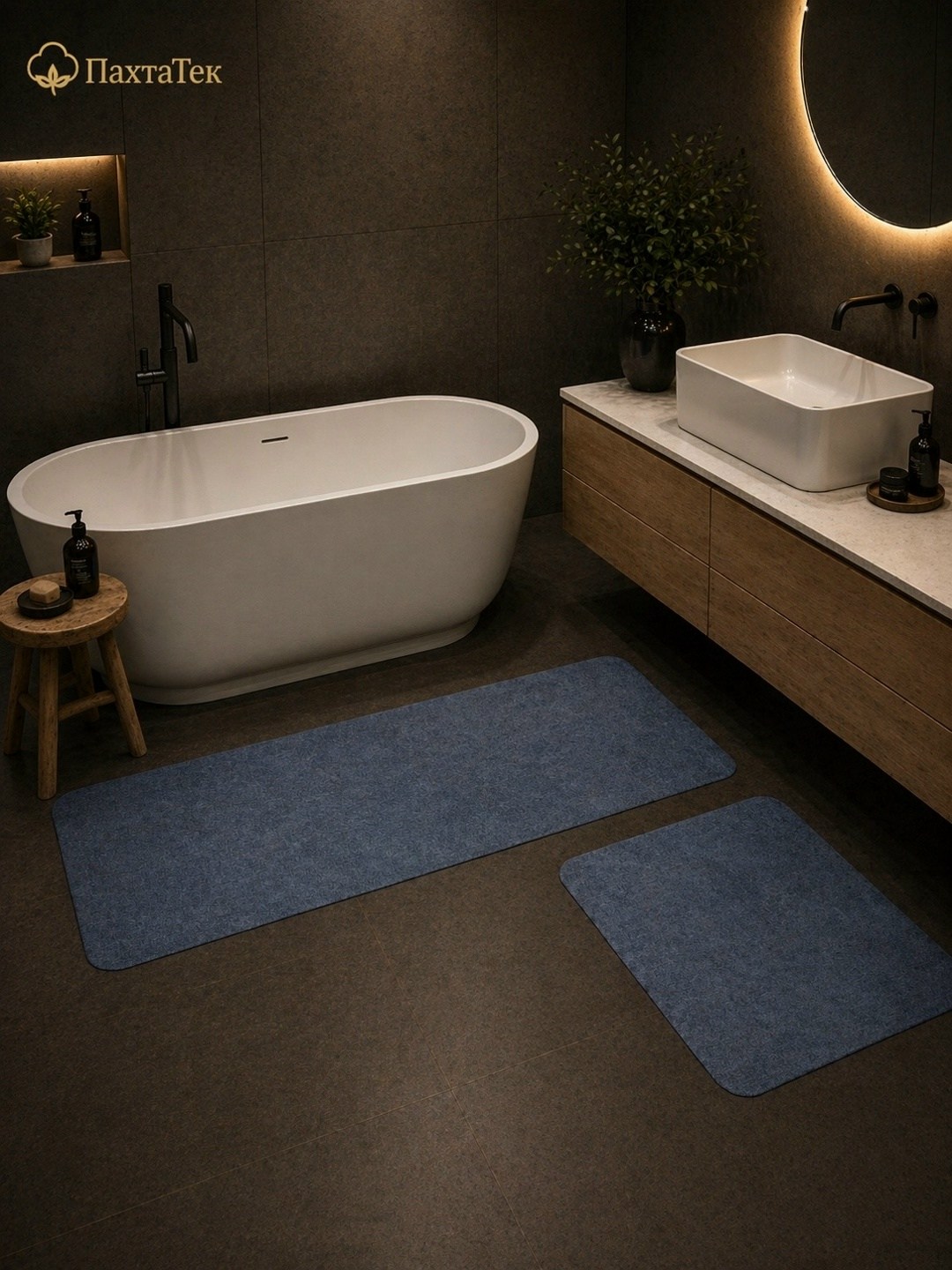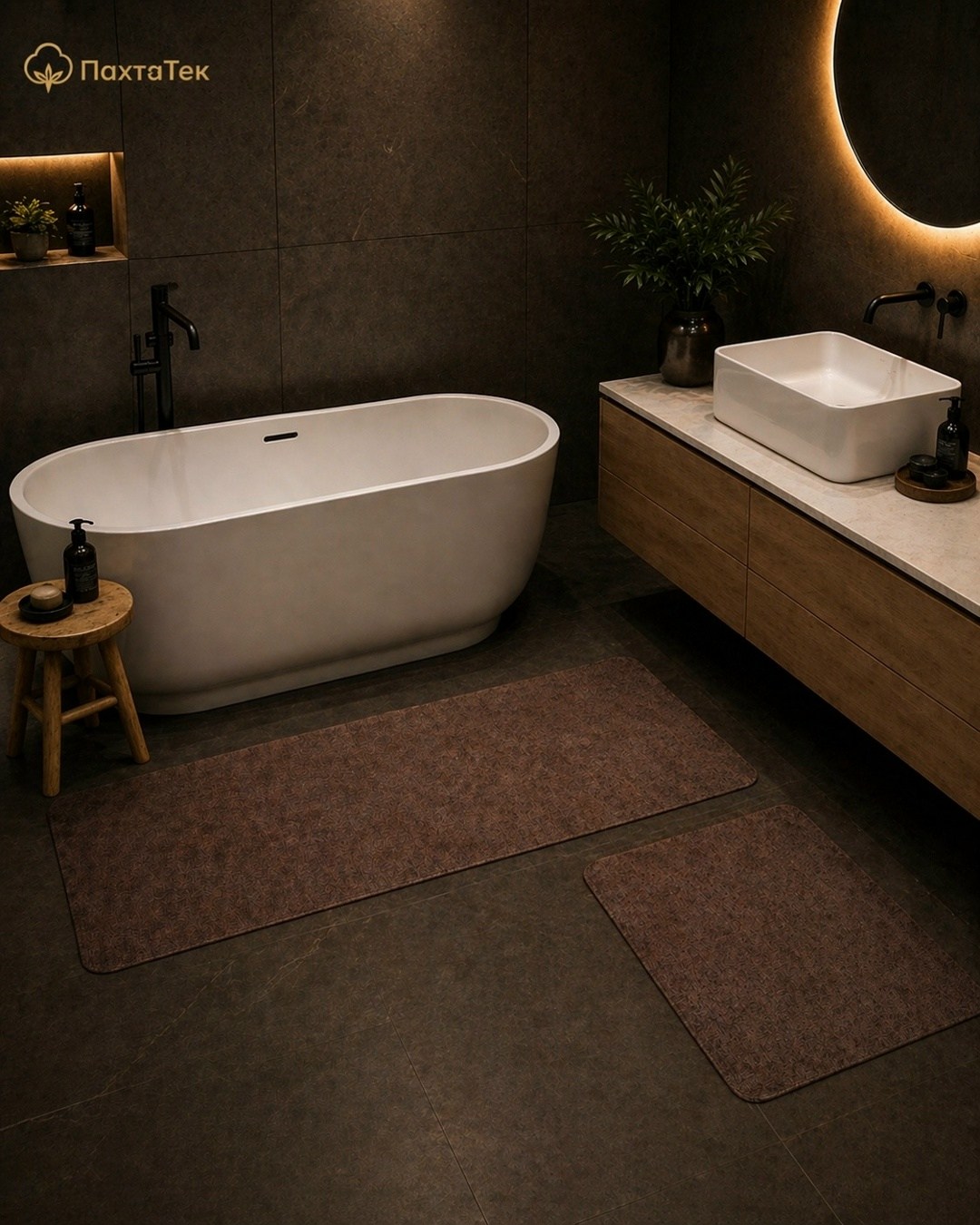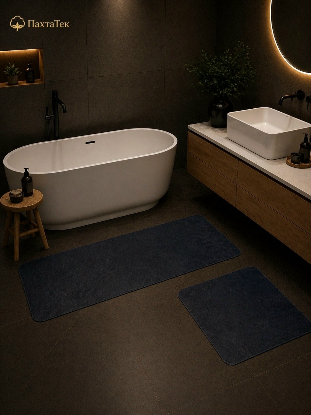 Набор отлично подходит для размещения возле ванны и раковины, создавая аккуратный и стильный вид в ванной комнате.