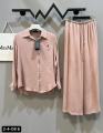 Легкая фактурная ткань, объемная рубашка и широкие брюки дарят невероятное ощущение свободы и идеально подходят для создания стильных многослойных образов.