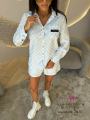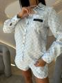 New summer luxury: твой идеальный сет на это лето встречай самый желанный костюм сезона в стиле l0uis vuitt0n Это тот случай, когда комфорт встречается с высокой модой Легкий костюм в пижамном стиле с легендарной монограммой идеальное сочетание домашнего уюта и люксового стритстайла Нежно-голубой принт на белом фоне придает образу свежести, делая его идеальным для жаркого лета.