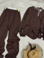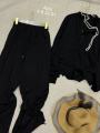 Этот костюм-стильное и практичное рещение для повседневных образов Обеспечивает максимальный максимальный комфорт и свободу движений Состоит из свитшота и брюк на кулиске!.
